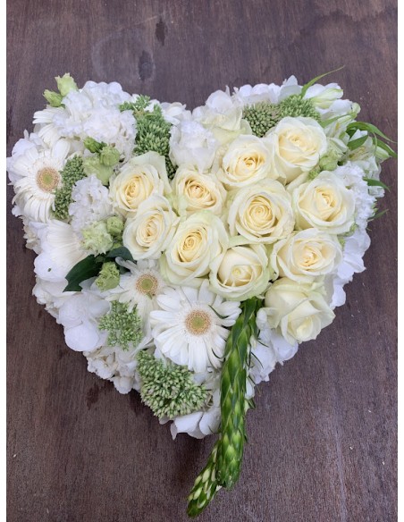 Die Blumen, aus denen diese Kreation besteht, sind kompakter gearbeitet als die anderen Baugruppen. Das Herz zu machen ist mühsame Arbeit. Aus diesem Grund empfehlen wir Ihnen, diese Kreation vorab zu bestellen.