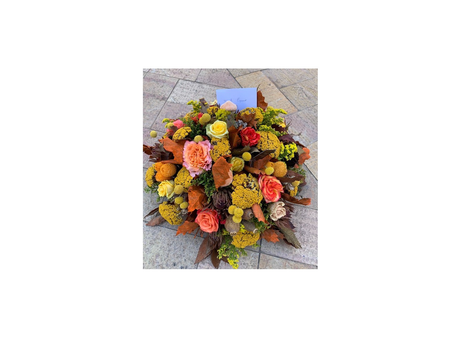 Form und Farben werden respektiert. Blumen werden je nach Jahreszeit und Verfügbarkeit ausgewählt.