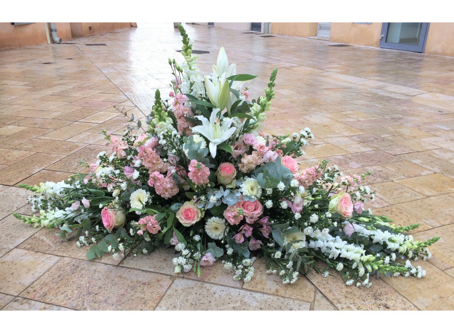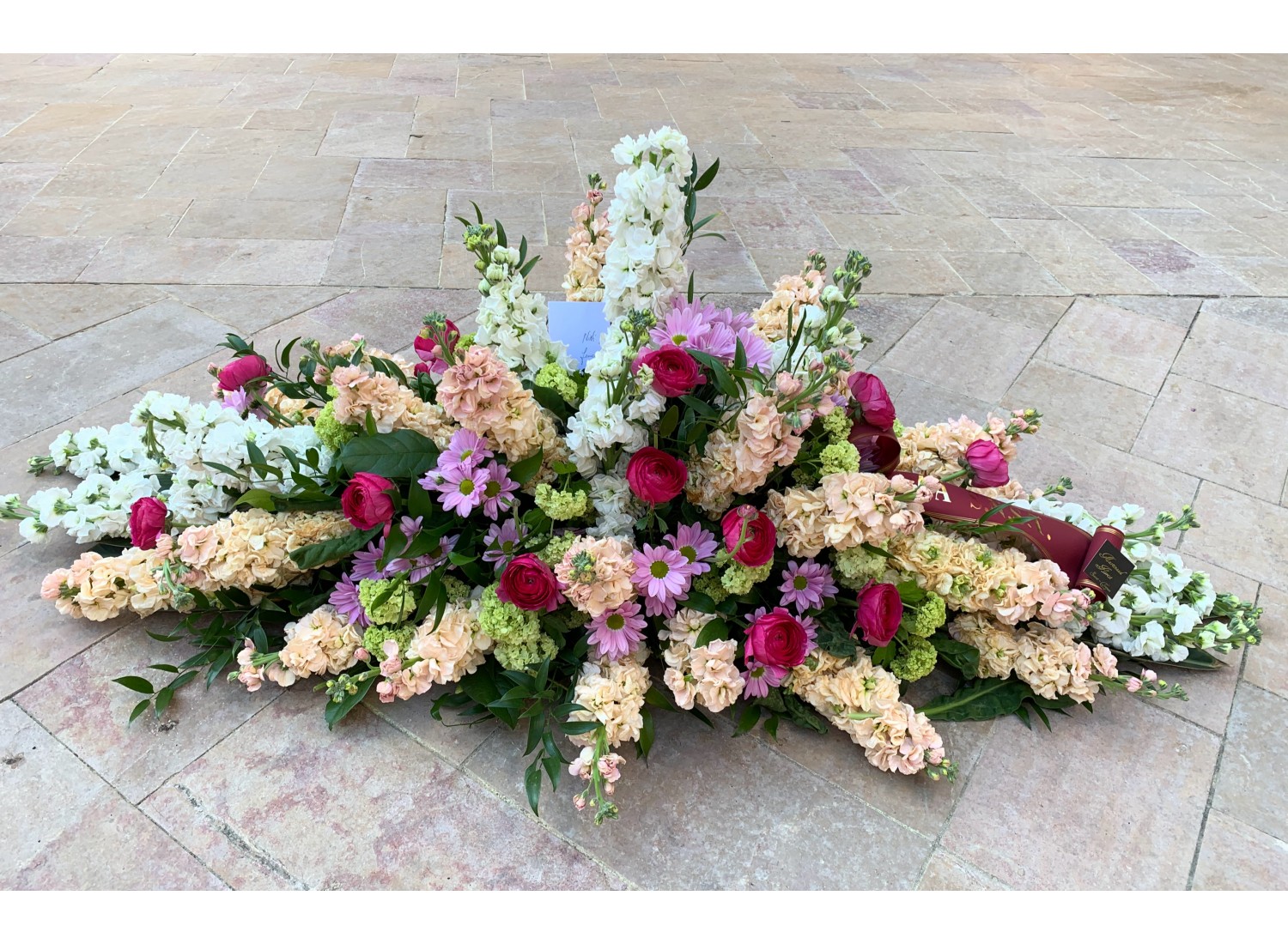 Pastel elongated funeral arrangement