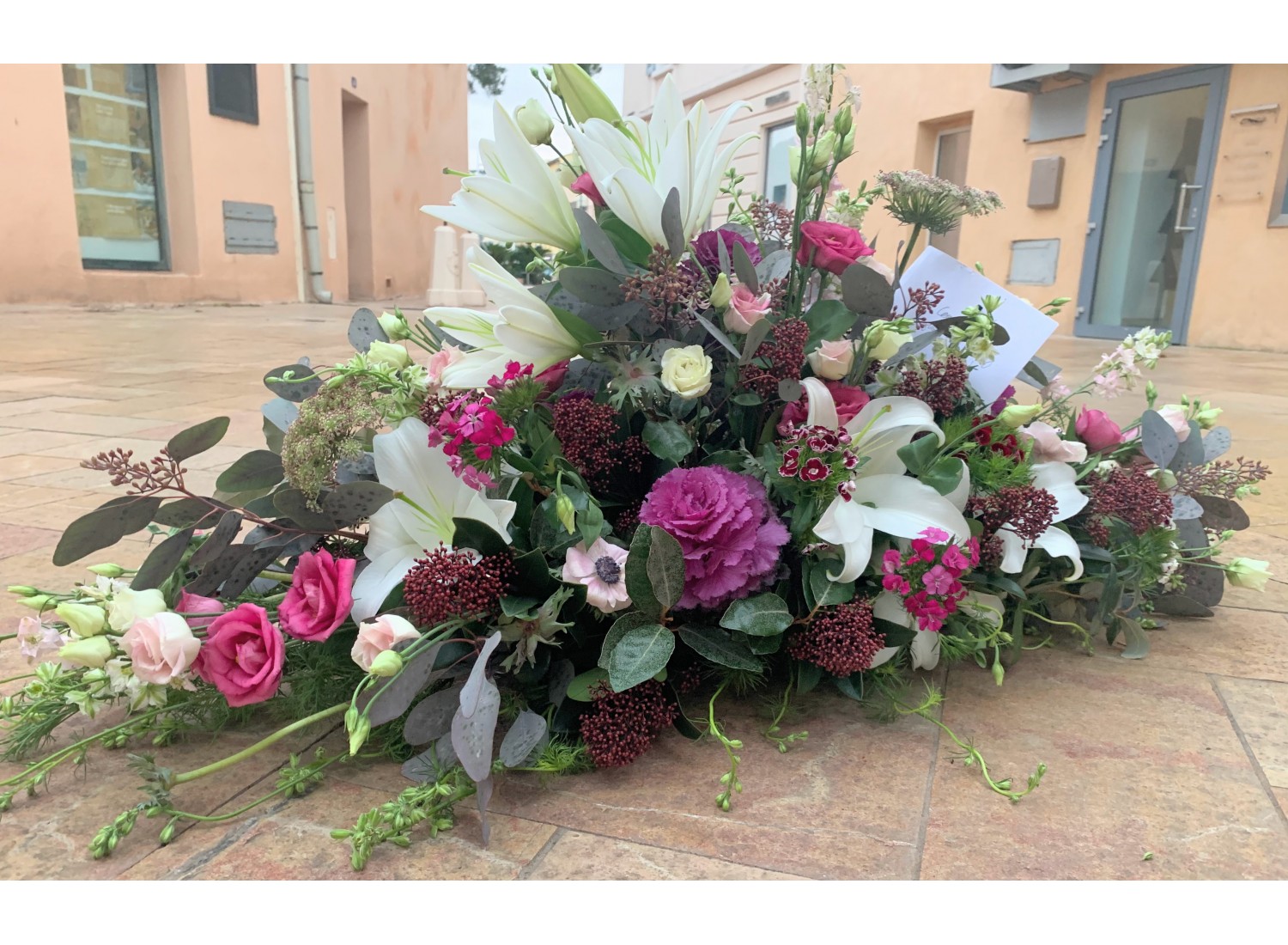 Before the payment of your order, you have the possibility of writing a message of condolences, to attach to your flower arrangement.