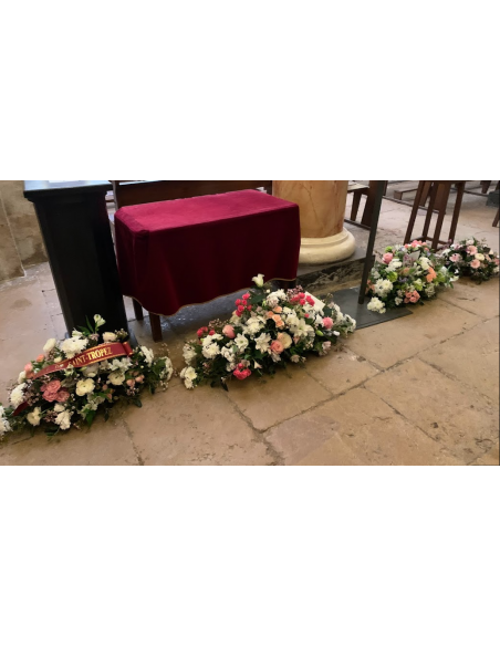 Il est préférable de livrer les fleurs des funérailles sur le lieu de la cérémonie. Merci d'indiquer l'heure de cérémonie pour que les fleurs soient livrées avant.